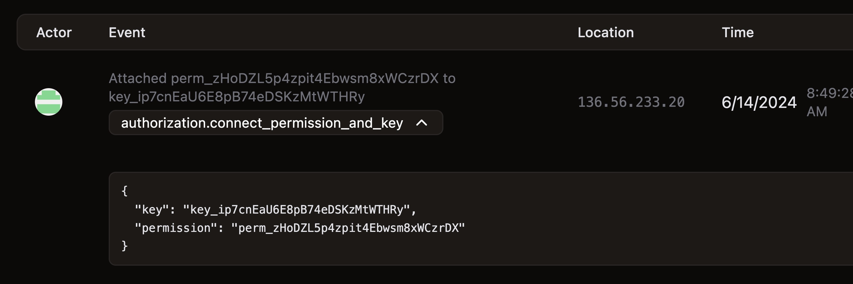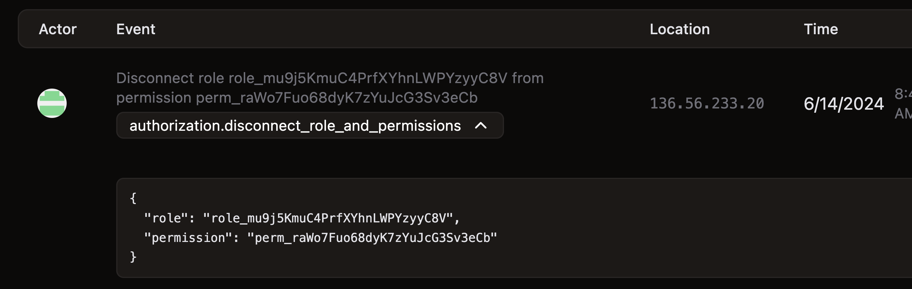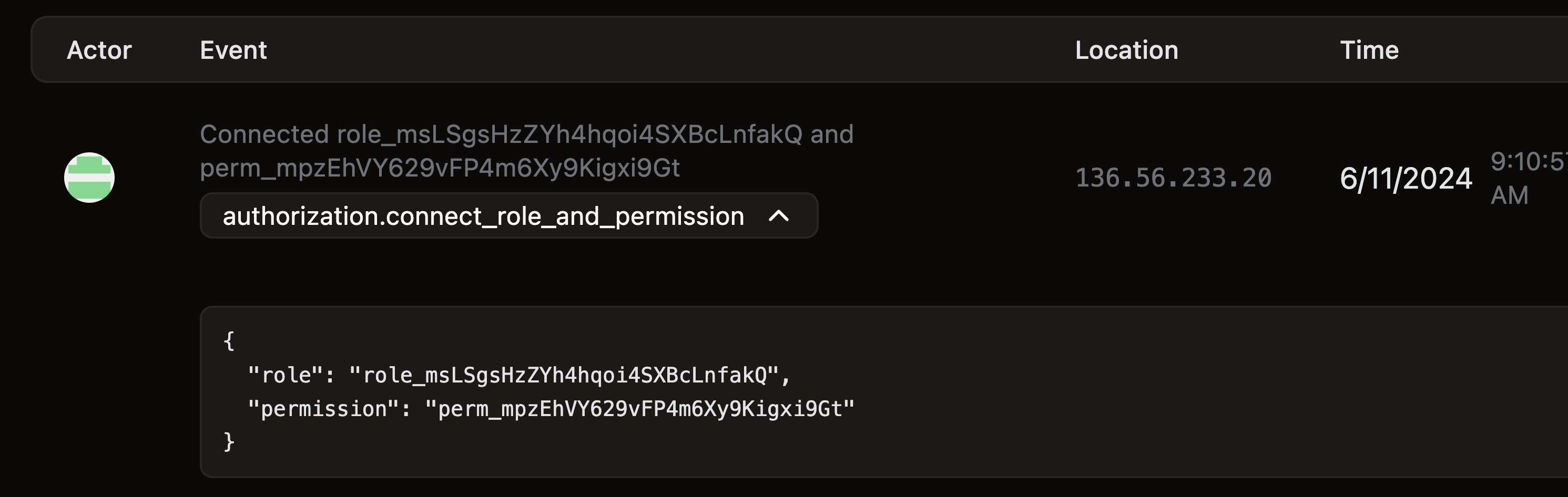 Authorization actions that will create a new audit log item.authorization.connect_role_and_permission