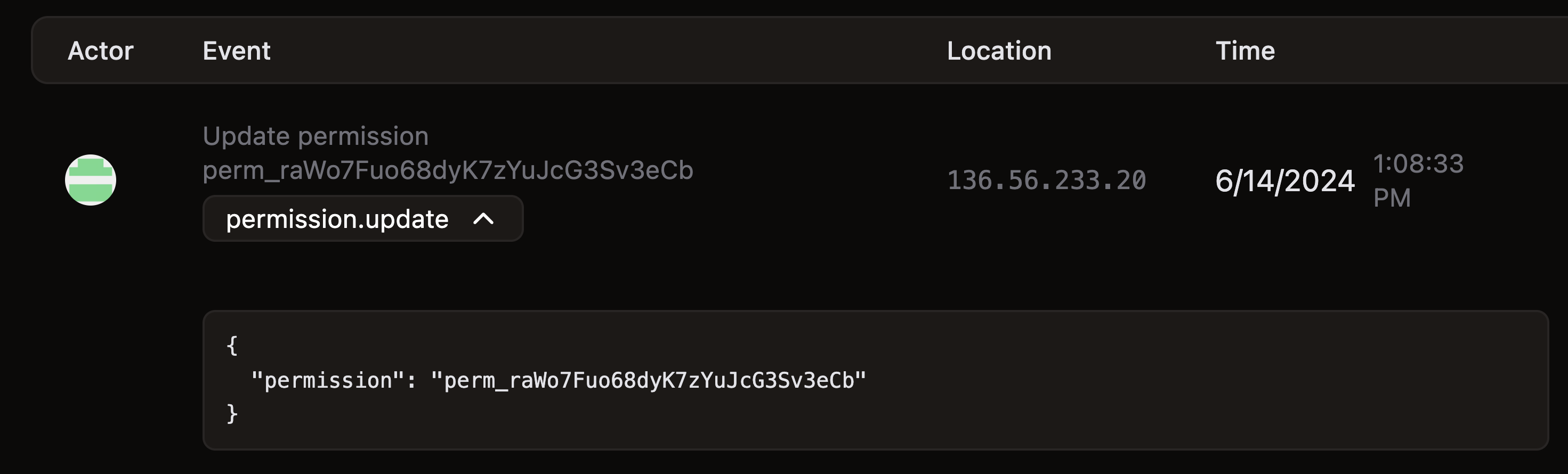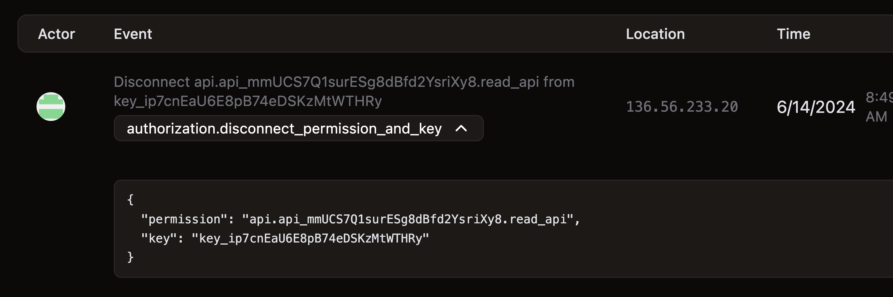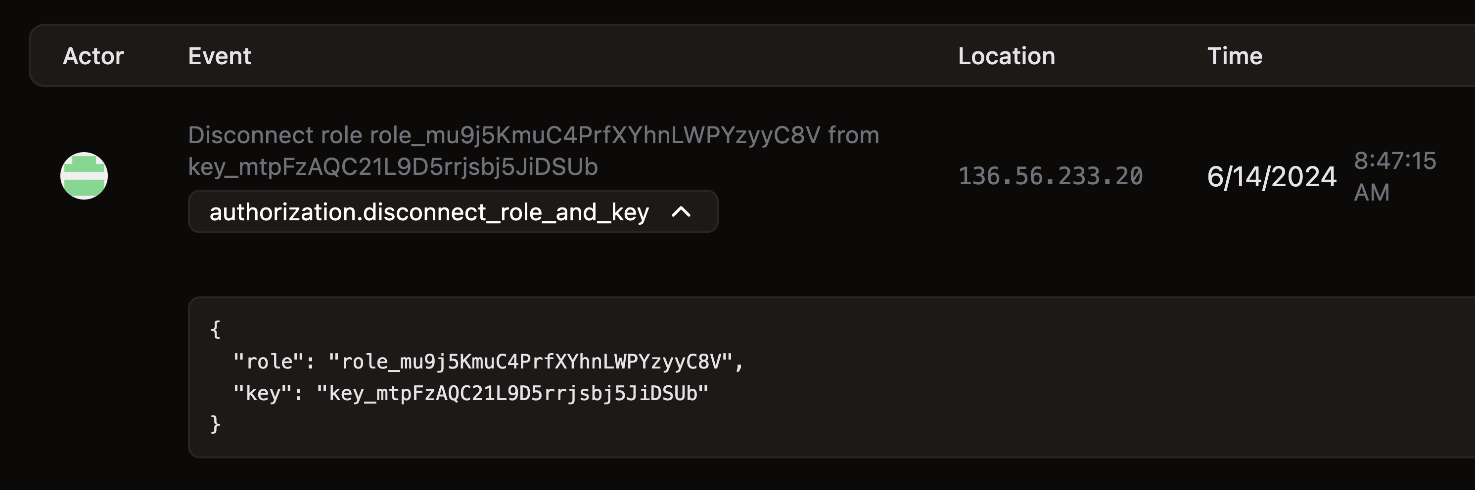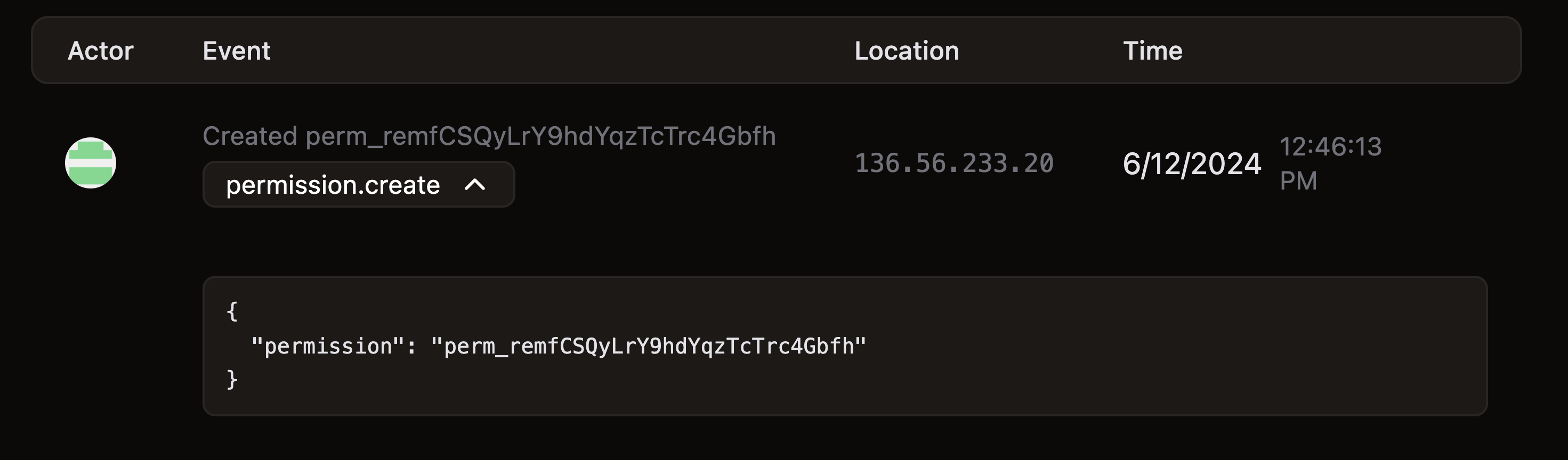Authorization actions that will create a new audit log item.authorization.connect_role_and_permission