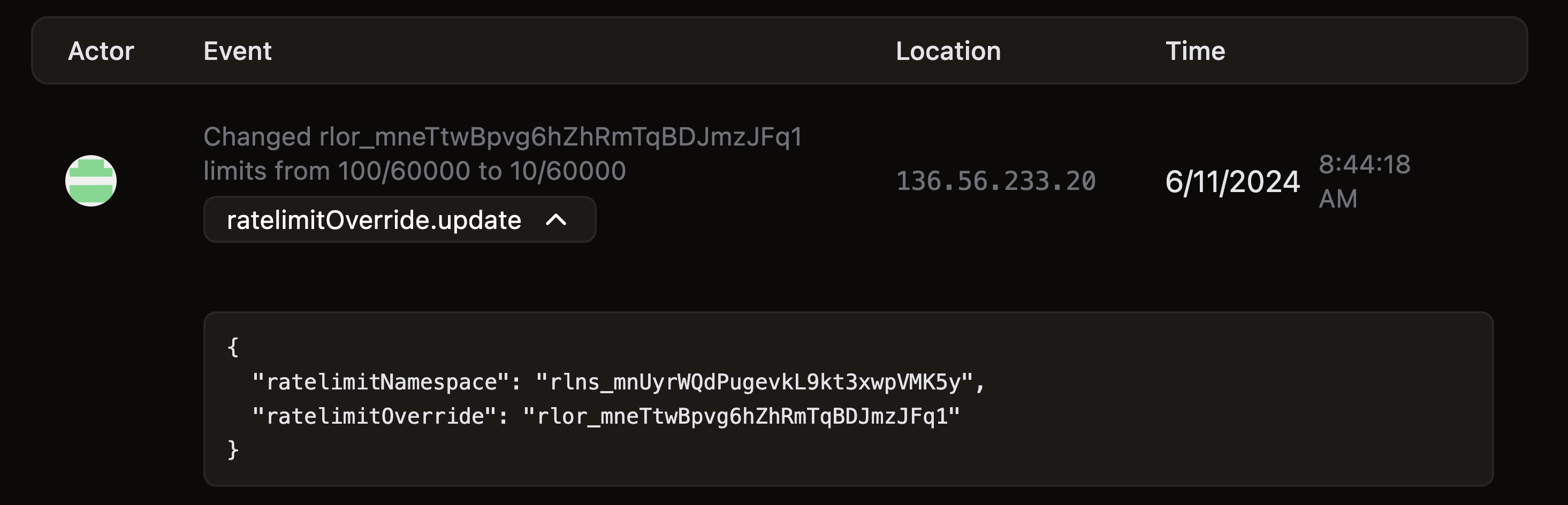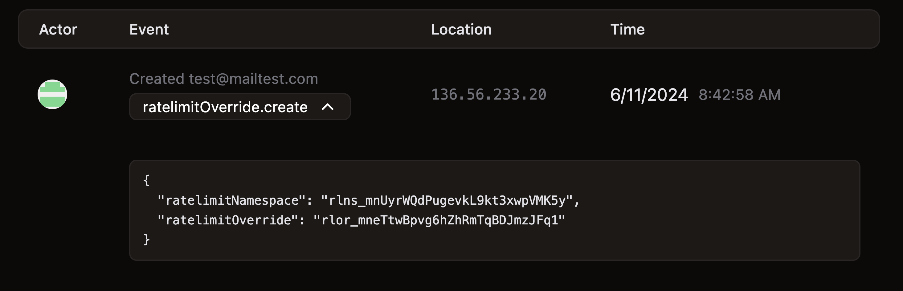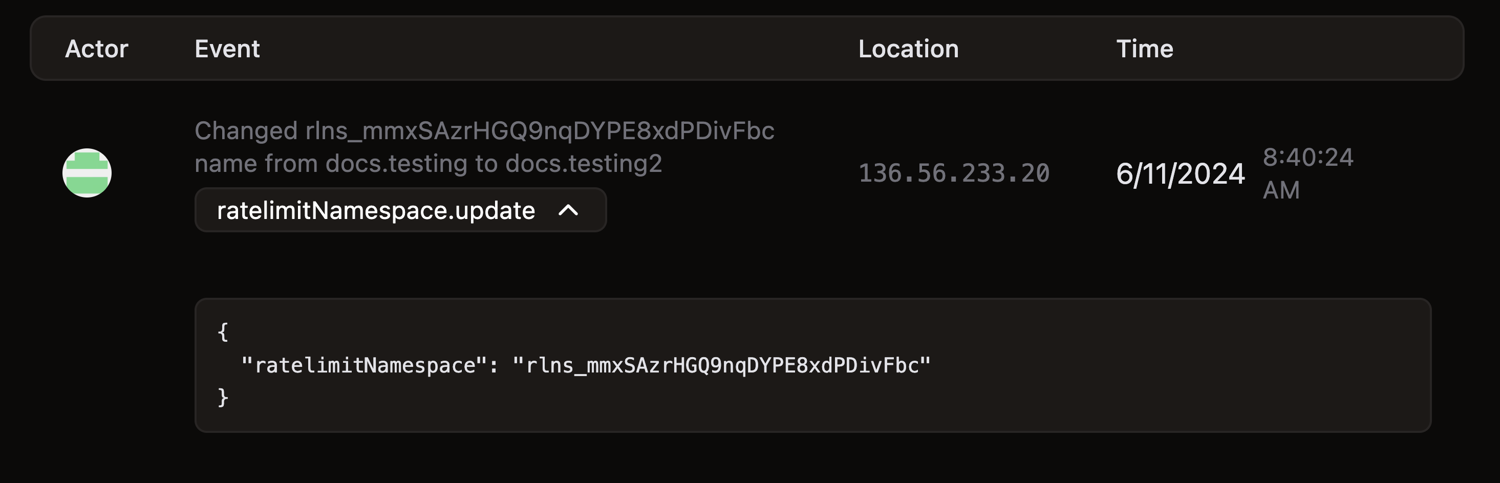 Ratelimit actions that will create a new audit log item.Ratelimit Namespace